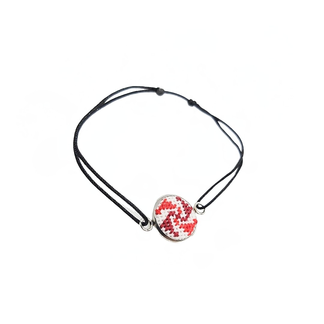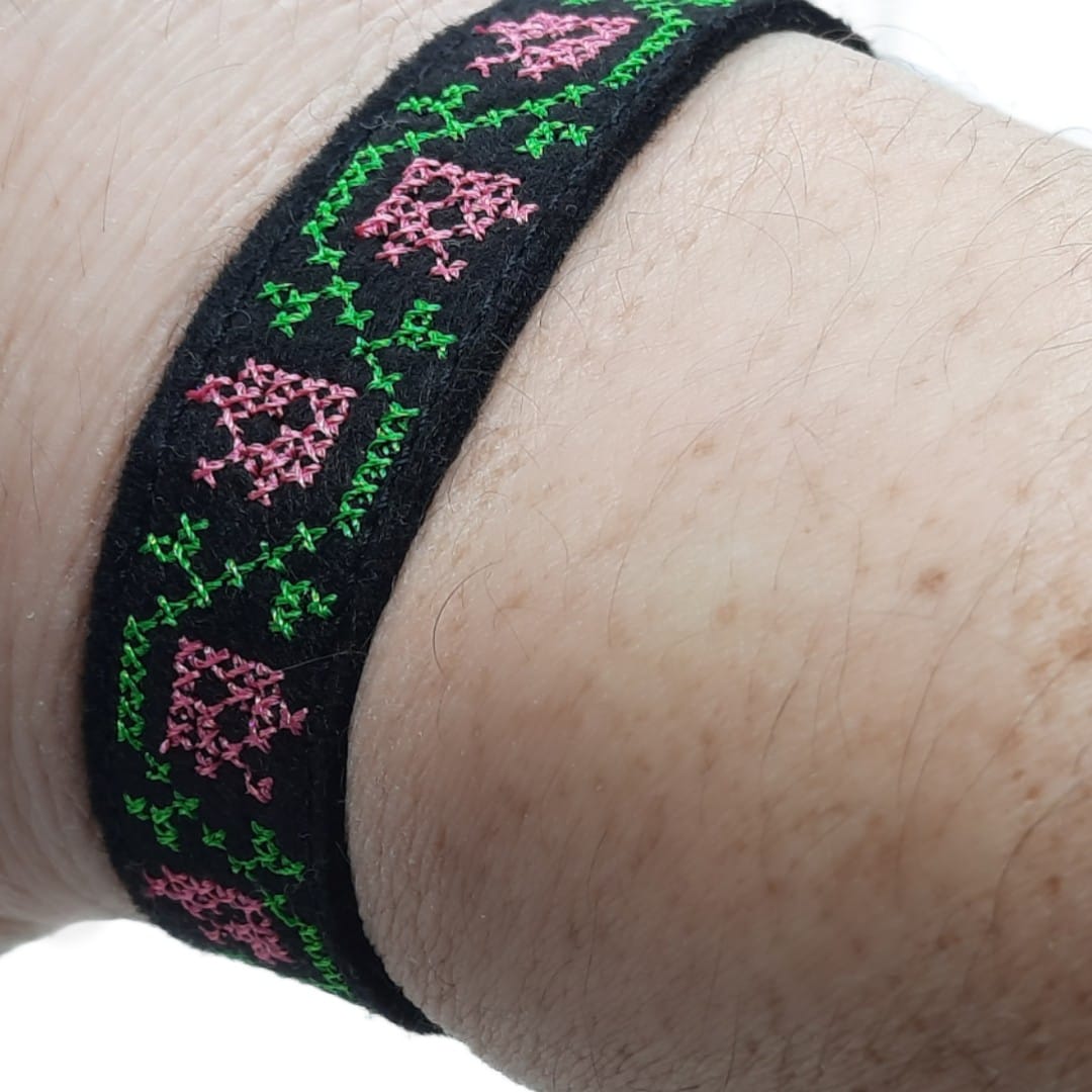 Aceasta este practic una din cele mai versatile si usor de intretinut bratari ce se poate personaliza, dupa parerea noastra. Sistemul de prindere este cu snur-nod reglabil, latimea variaza intre 10 si 15 cm. Bratara este cusuta solid fiind rezistenta la uzura, iar spalarea se poate face cu apa calda sau rece manual sau la masina de spalat, fara probleme.