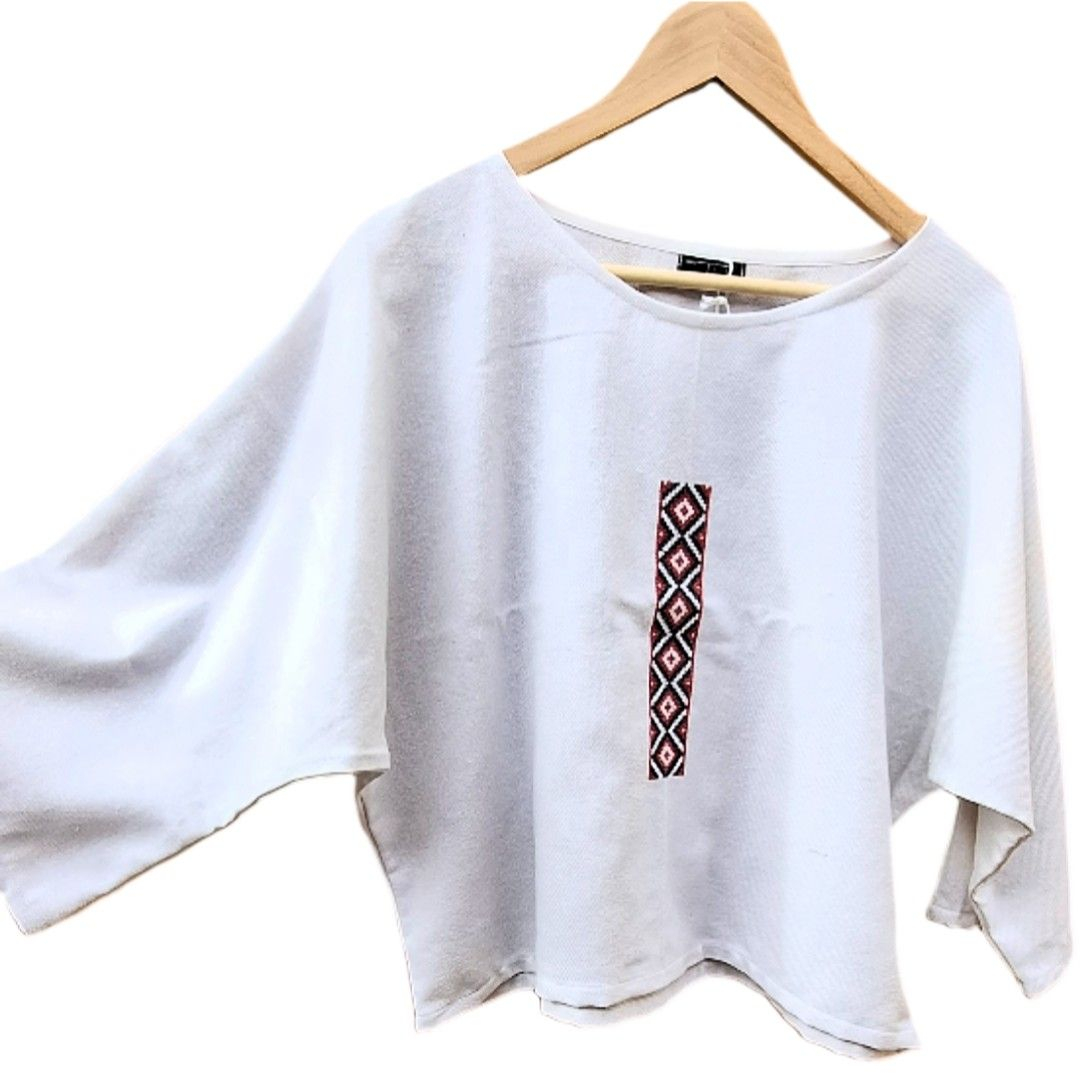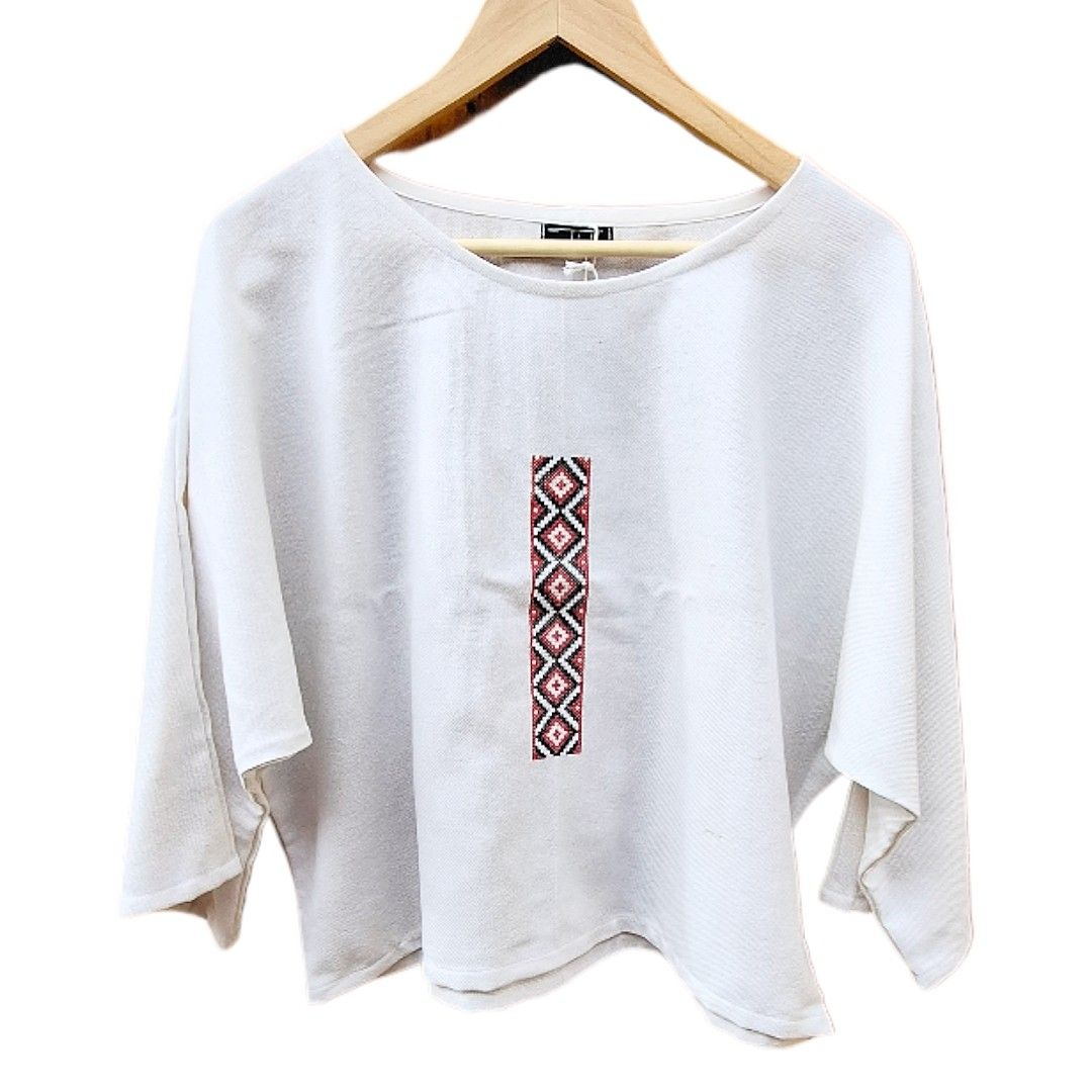 Tela Bluză Boho din bumbac alb inspirație tradițională, Abundență