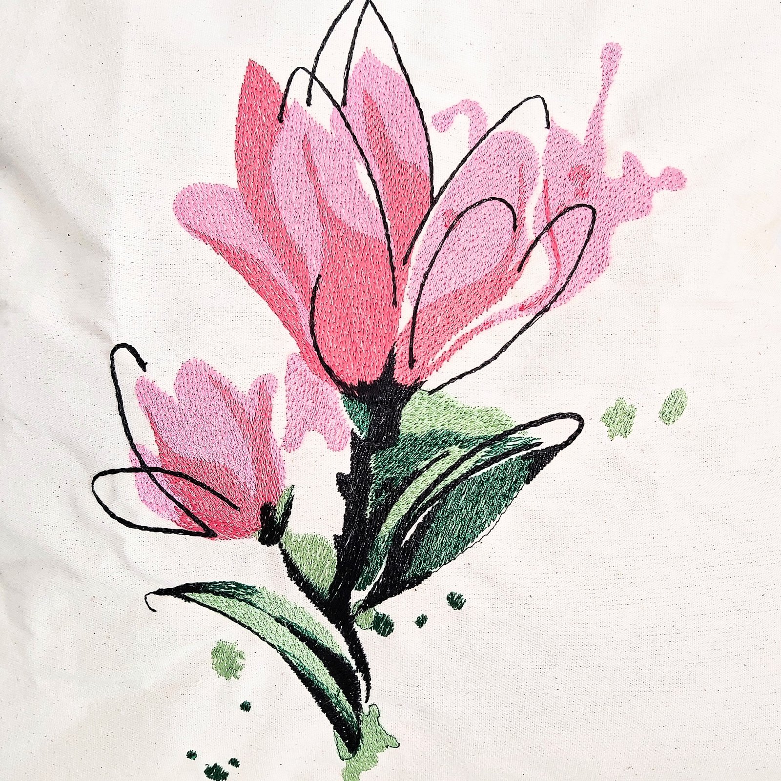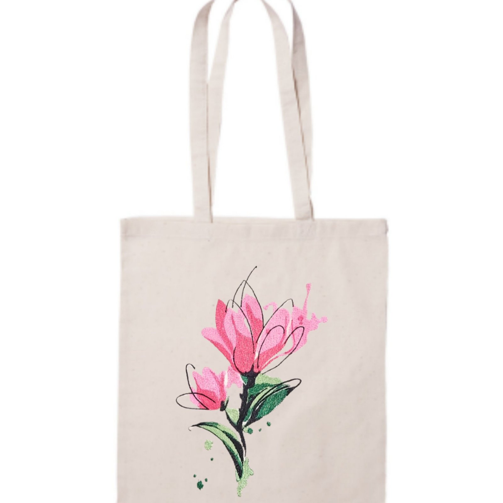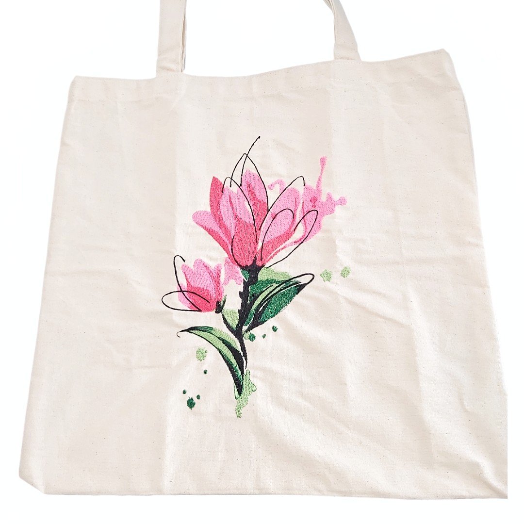 Traista din bumbac cu broderie si model de inspiratie traditionala/florala.